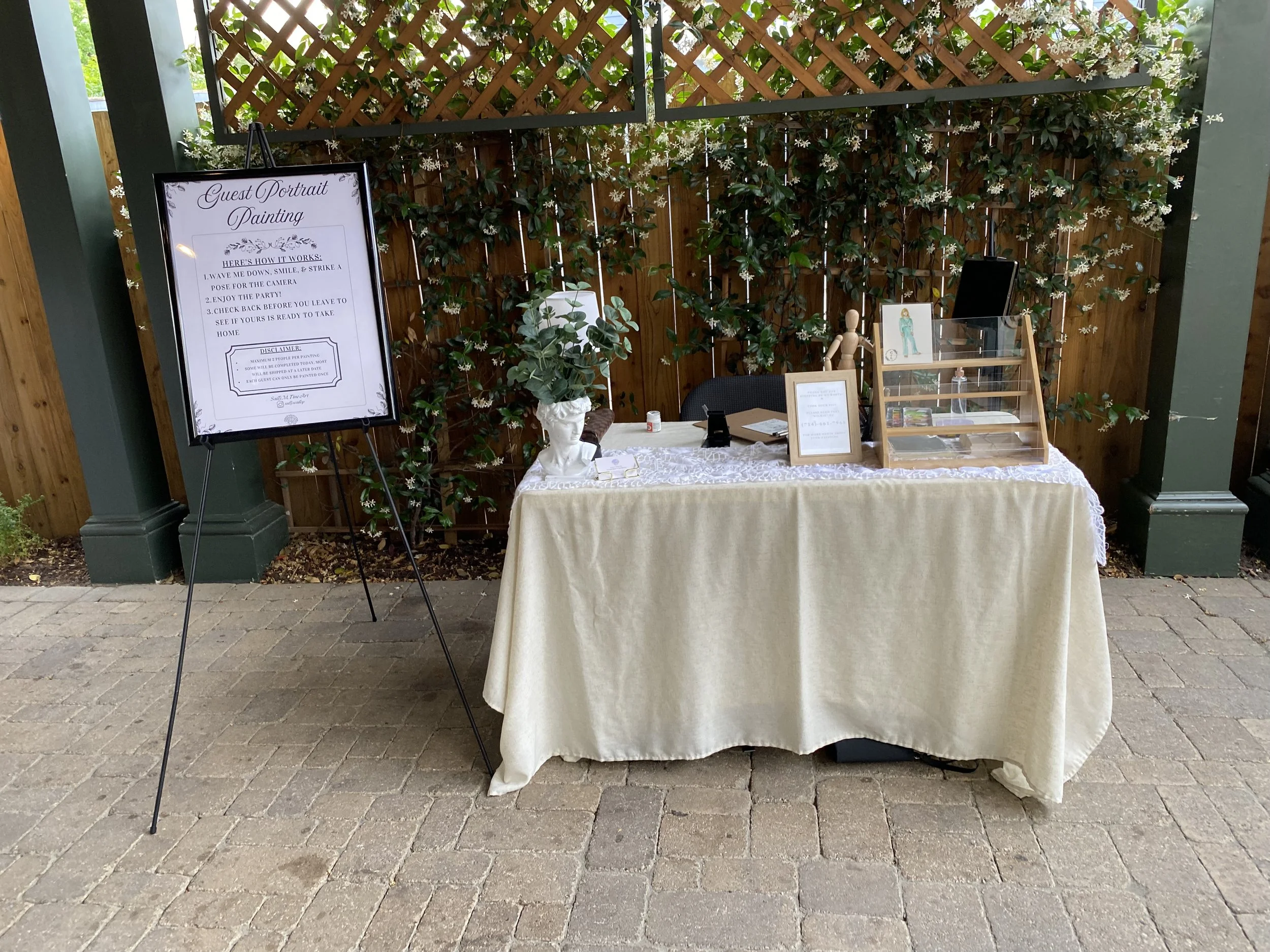 From there, I will bring a 4 foot table, linens, and a standing easel with a sign for guests to read.